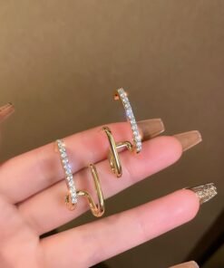 LATS Latest New Design Irregular U-shaped Gold Color Earrings for Woman Korean Crystal Fashion Jewelry Unusual Accessories Girls